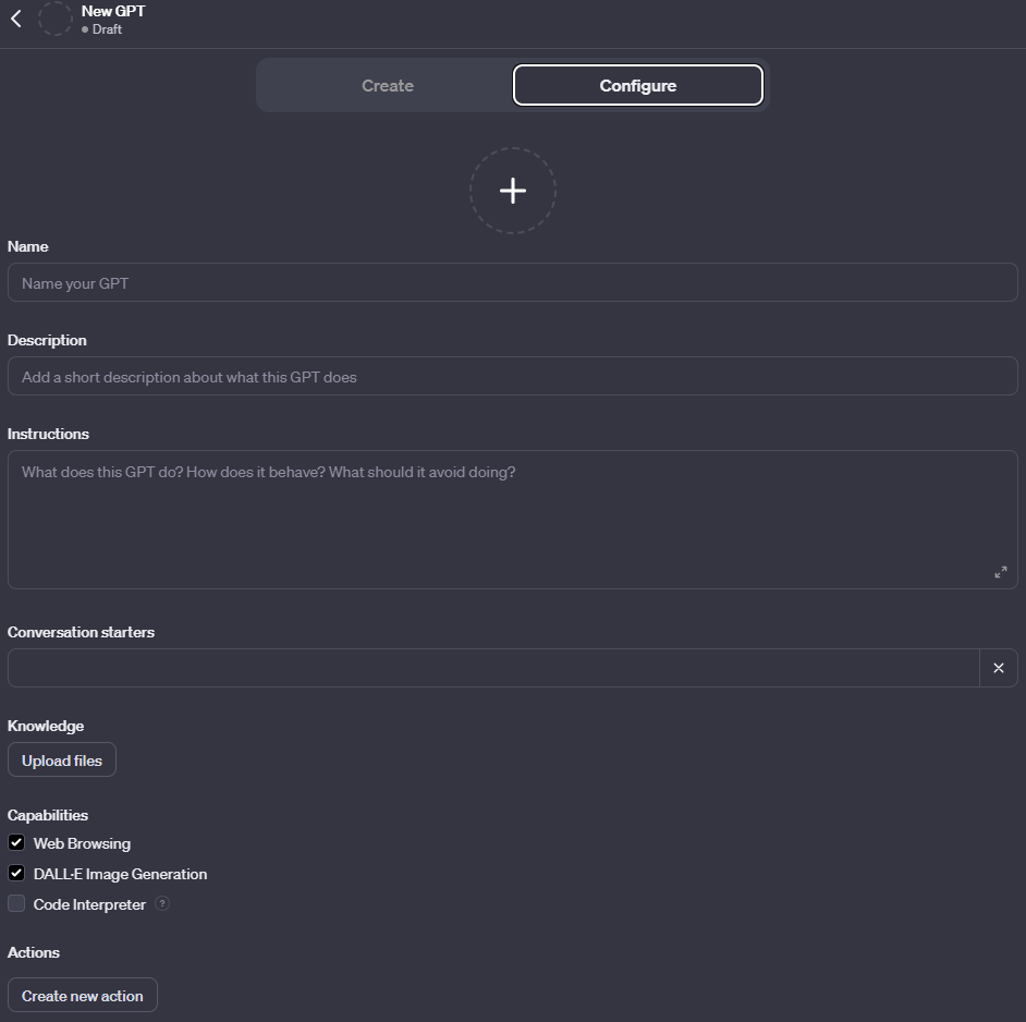 You can supplement the GPT’s knowledge base with additional information relevant to your needs. Specify the capabilities you desire, such as web searching, image generation, or data analysis.